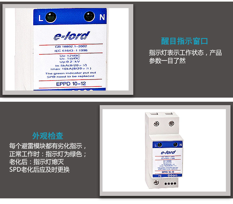 EPPD系列低壓直流型電源SPD是單體電源防雷模塊,防止感應(yīng)過電壓或操作過電壓對低壓交流用電設(shè)備的損壞。
